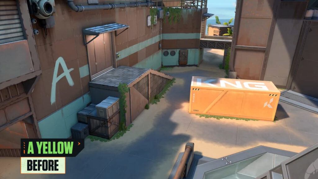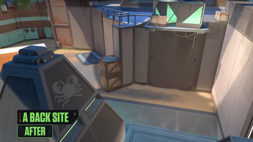 There is also the addition of a box in the back site, granting a safe spot for attackers to defend the spike from the enemies coming from CT. The box behind the big yellow container will be removed, taking away a great spot for defenders to secure the site.
