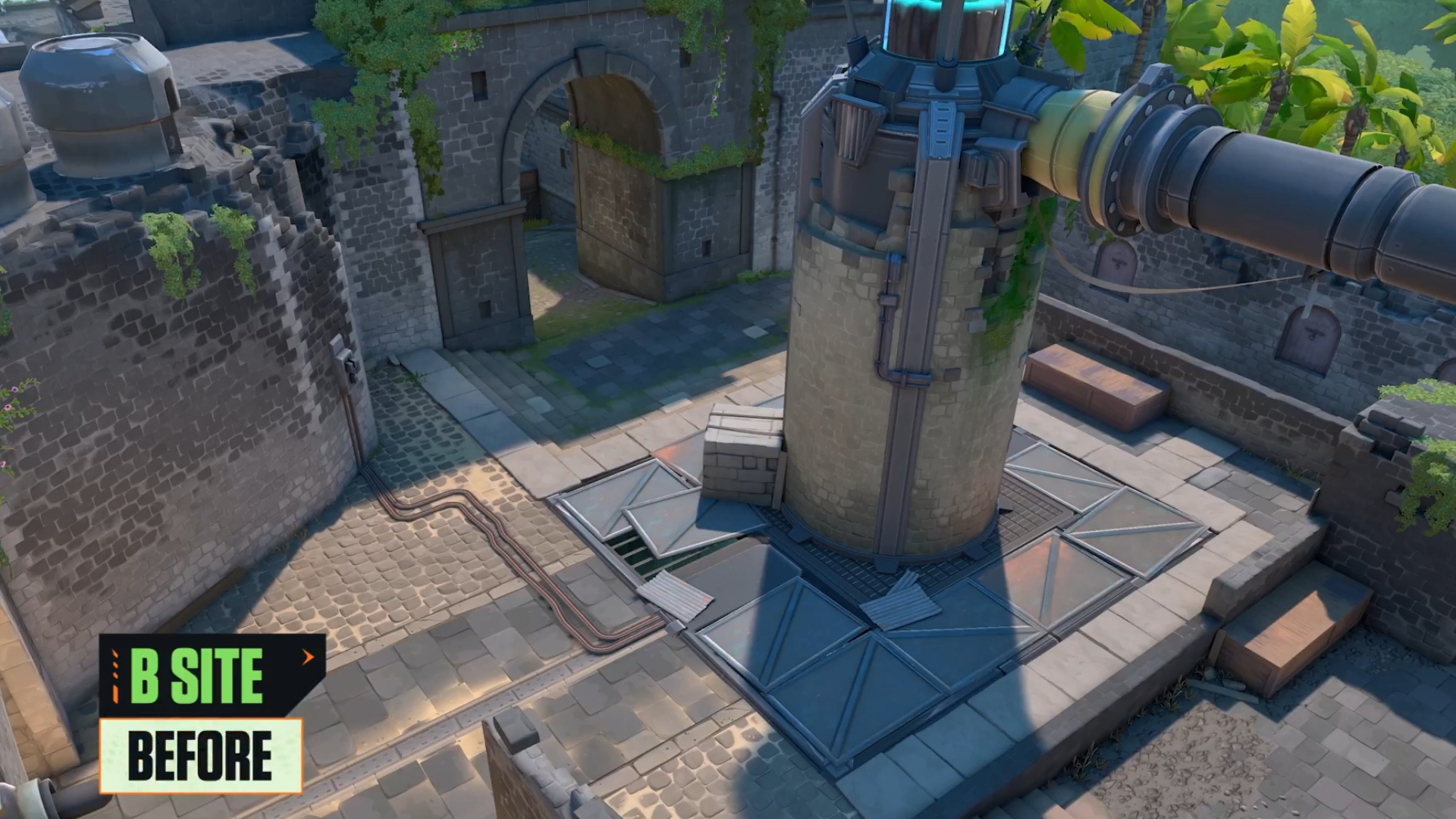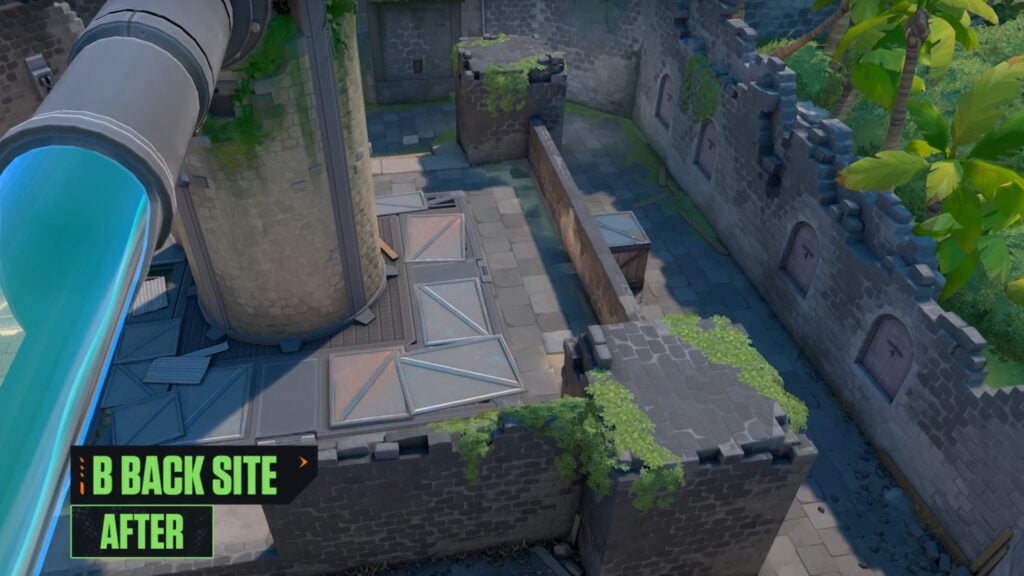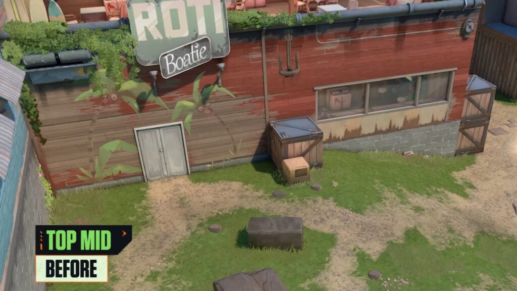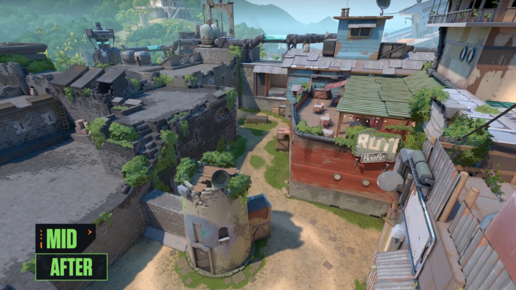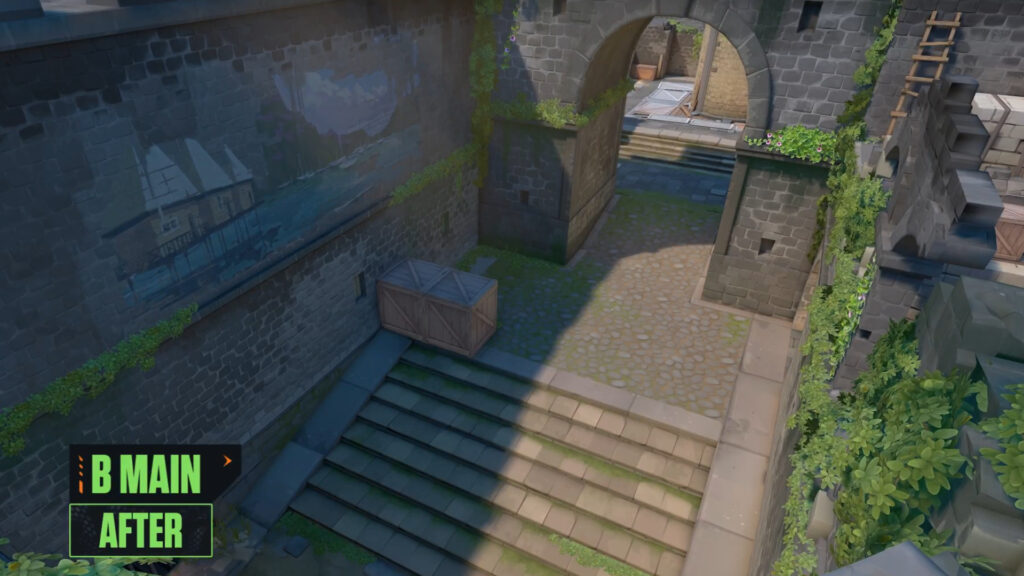 The mid entrance to A site is slightly open, but you have less vision of the site. The side box was also removed for a clear path. As for that jump, where attackers could get more control of the top mid and B link, that will also be removed. Unless you are a Jett or maybe a Raze with her satchels, you won’t be able to reach the top of that wall.