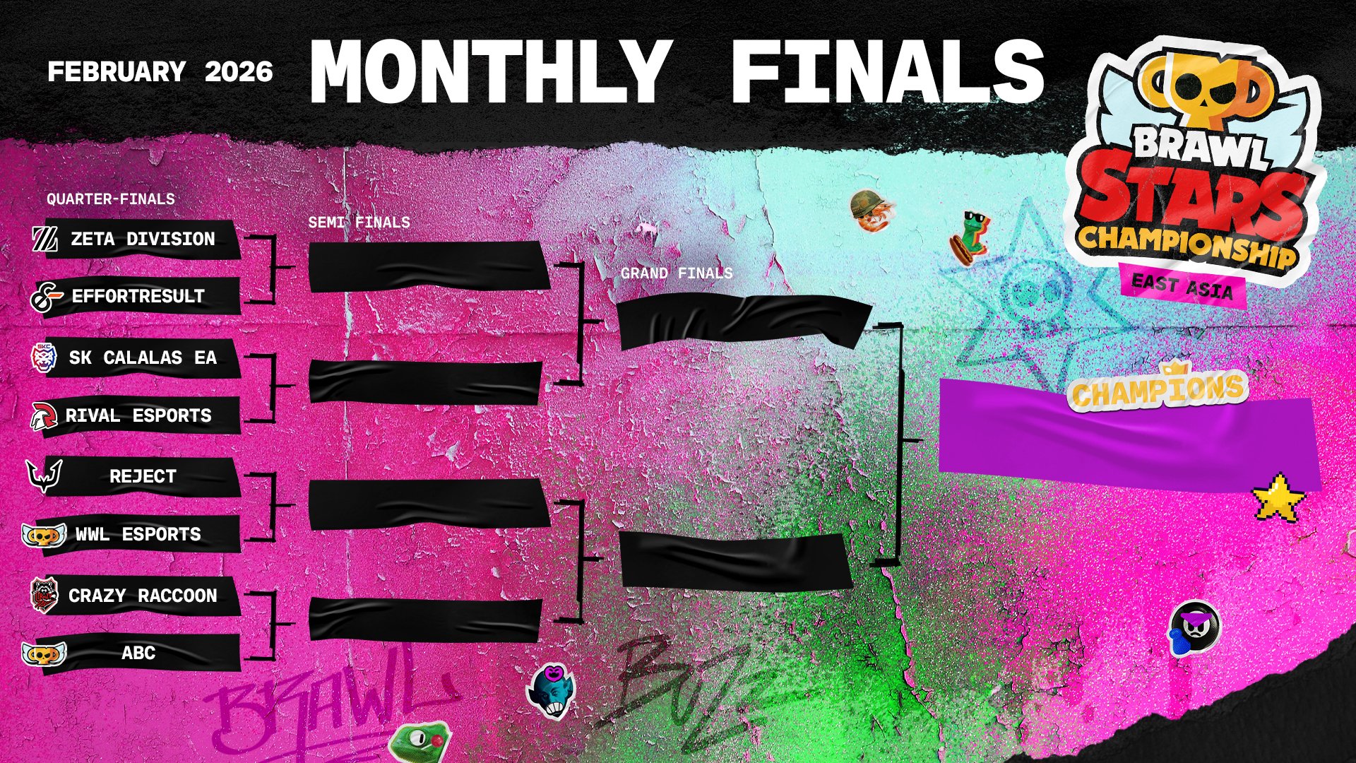 In addition to Crazy Racoon, we can see a few other super-strong Brawl Stars esports teams competing in the February Finals 2026 event in East Asia. REJECT, ZETA DIVISION, and SK Calalas EA won their brackets in the qualifier event. In the quarterfinals, they face lower-seeded teams.