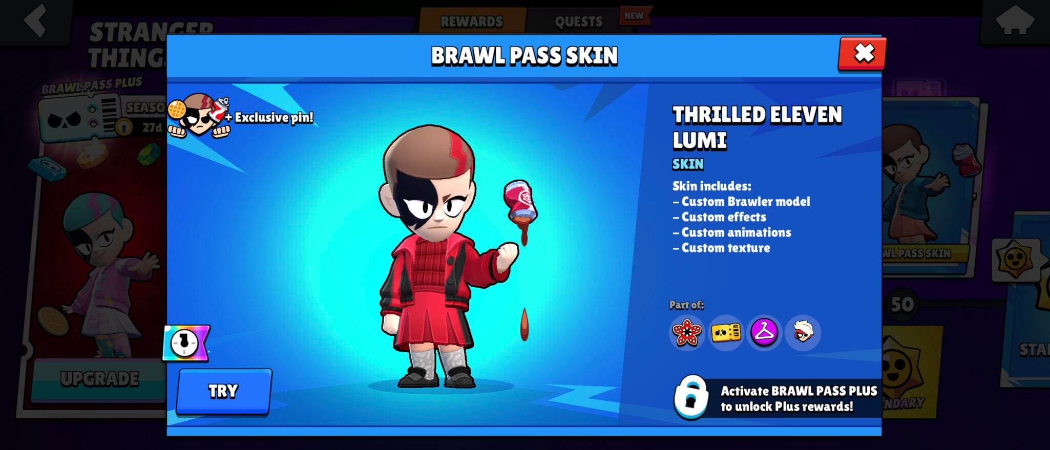 The collaboration event comes with the Stranger Things Brawl Pass season. Its main reward is the Eleven skin for Lumi.