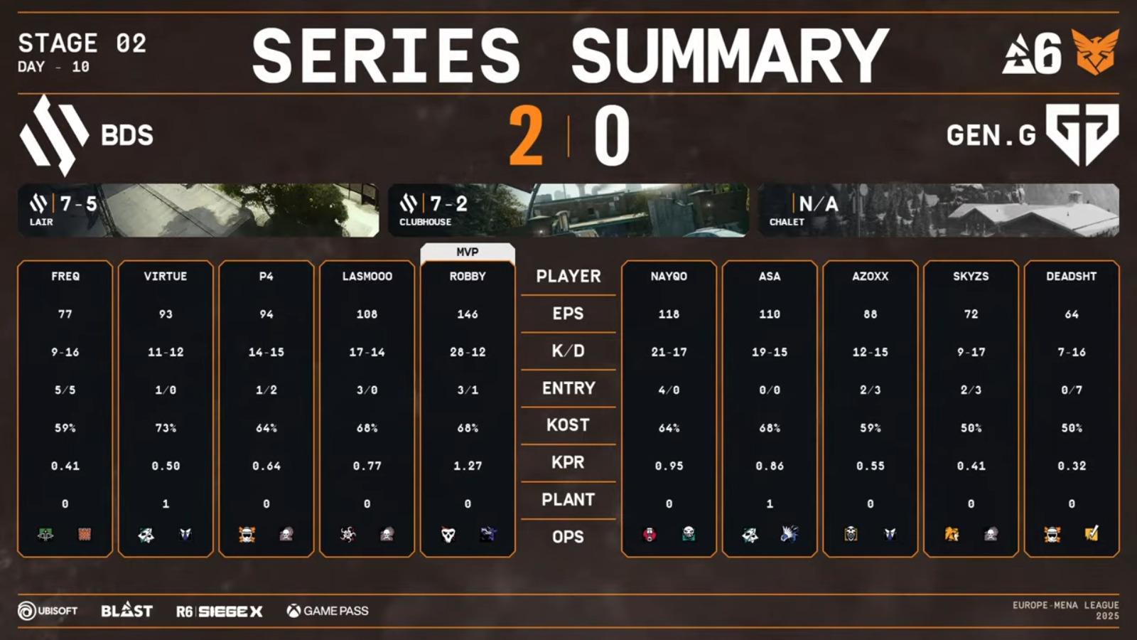 - Team BDS defeated Gen.G with a 2:0. After a close Map 1, BDS dominated on Map to secure the series.