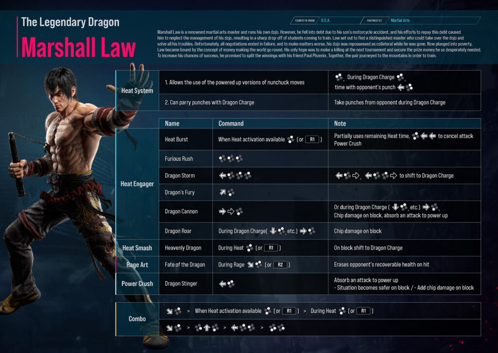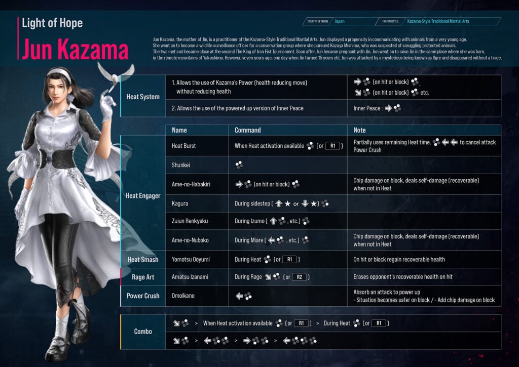 Here are all of the Tekken 8 moves for Jin, Kazuya, Jun, King, Marshall Law, Paul Phoenix, and more. This moves list, as provided by the game’s official website, includes different Rage Arts, Heat Engagers, and combos as well.
