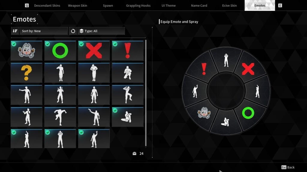 To perform an emote on PC press and hold L to select an emote from your Emote Wheel. Surprisingly the key bind for Emotes is not listed in the settings menu on the PC version of The First Descendant. Sprays can also be used via the same Emote Wheel.