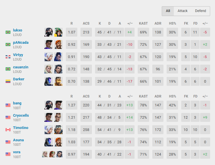 100T defeated LOUD by 2-1 (Screenshot from vlr.gg)