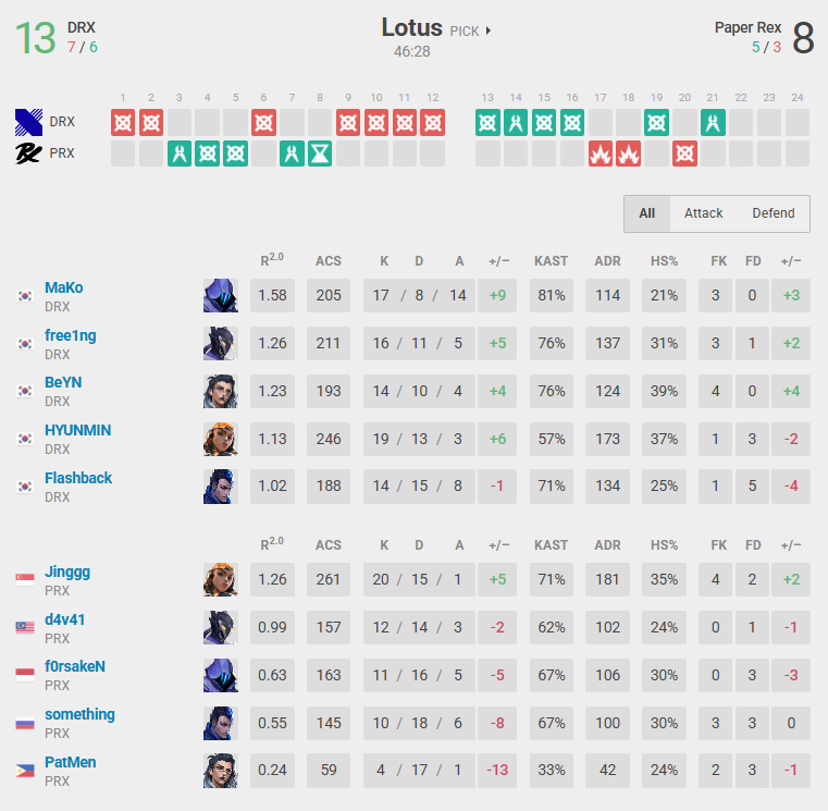 Teams Map 1: Ascent Map 2: Lotus Map 3 | DRX vs PRX DRX 15 - 13 PRX DRX 13 - 8 PRX - |